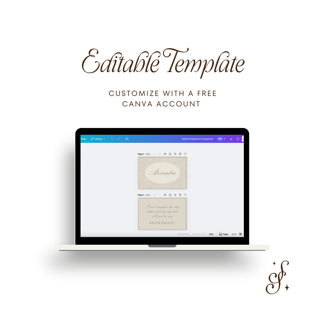 6 x 4in fully editable Bridesmaid Proposal Card Canva template