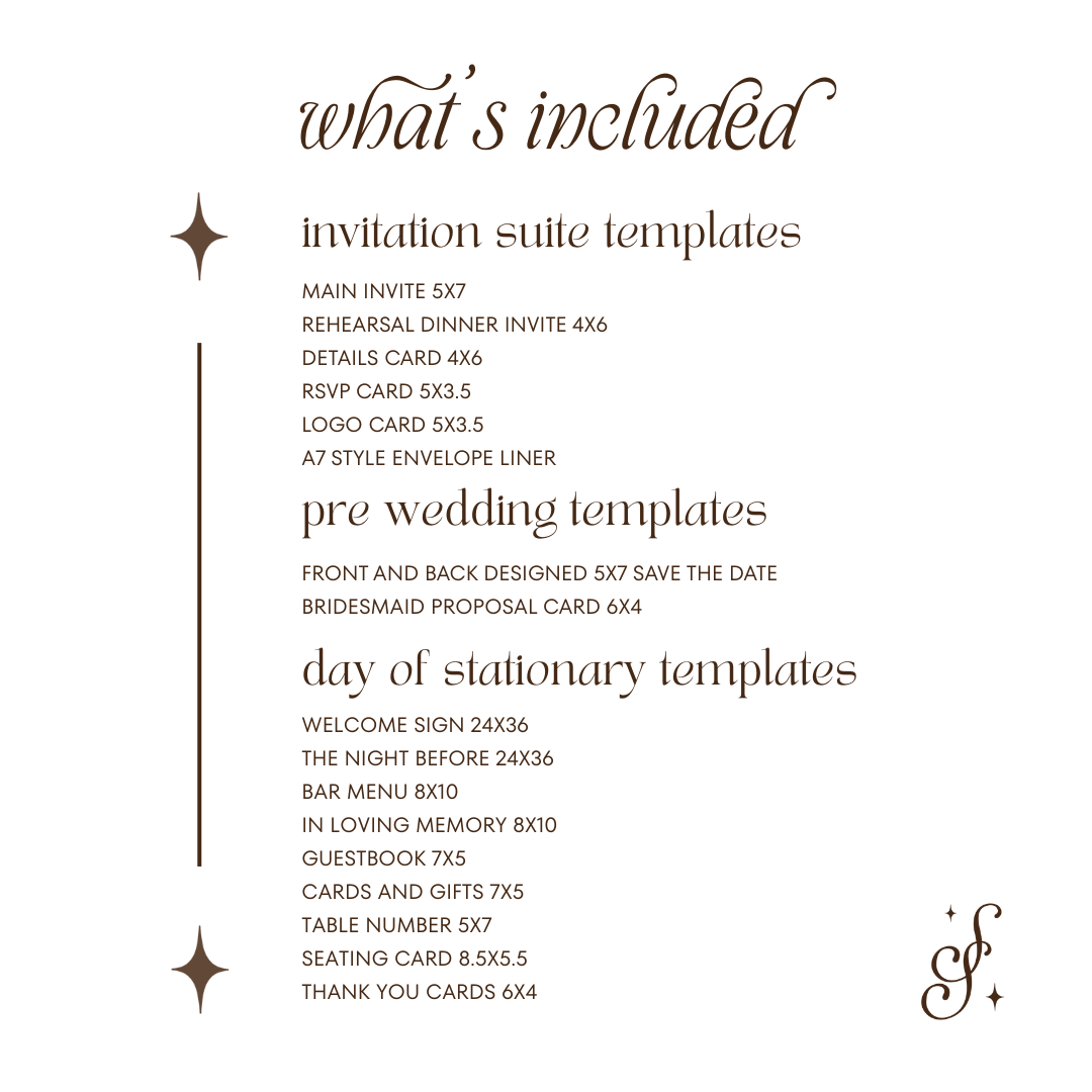 This all-in-one digital suite allows you to easily edit text, fonts, and colors in Canva, no design experience required, making it simple to achieve a refined, designer-curated aesthetic from invitations to day-of details.