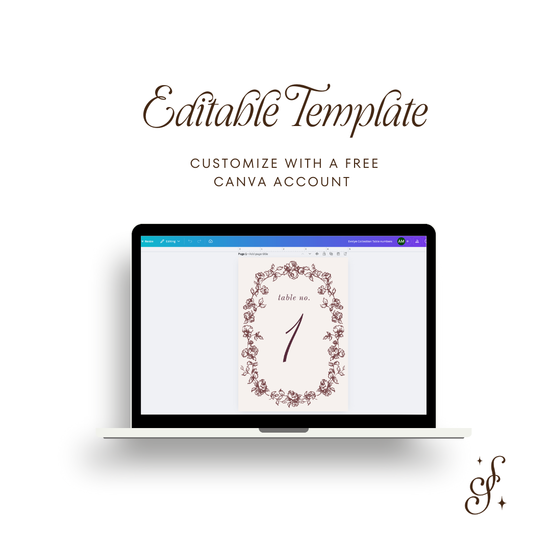 Designed to coordinate seamlessly with the Evelyn invitation suite. Fully editable, this Canva template allows you to customize table numbers to suit your event with ease.
