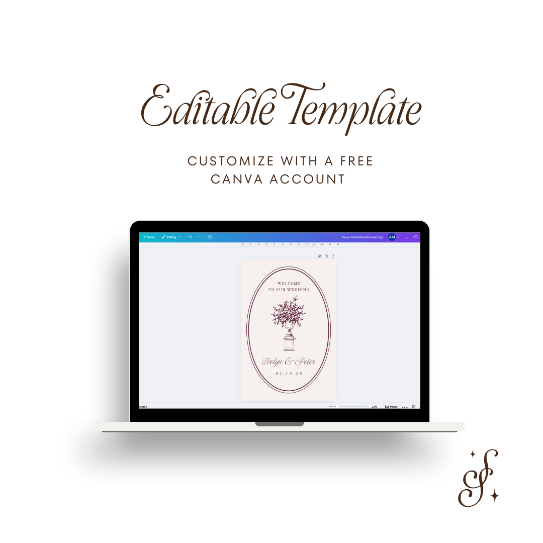 Set the tone for your wedding weekend with our Evelyn Collection Welcome Sign. Designed for ease and flexibility, this 24×36 digital template is fully editable in Canva, allowing you to customize names, dates, and wording to suit your event while maintaining a timeless, cohesive look.