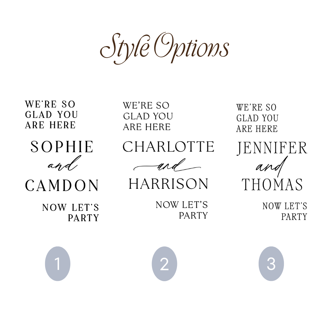 With customizable font, size, and color options, this decal allows you to tailor the typography to your event’s aesthetic, whether classic, romantic, or modern.