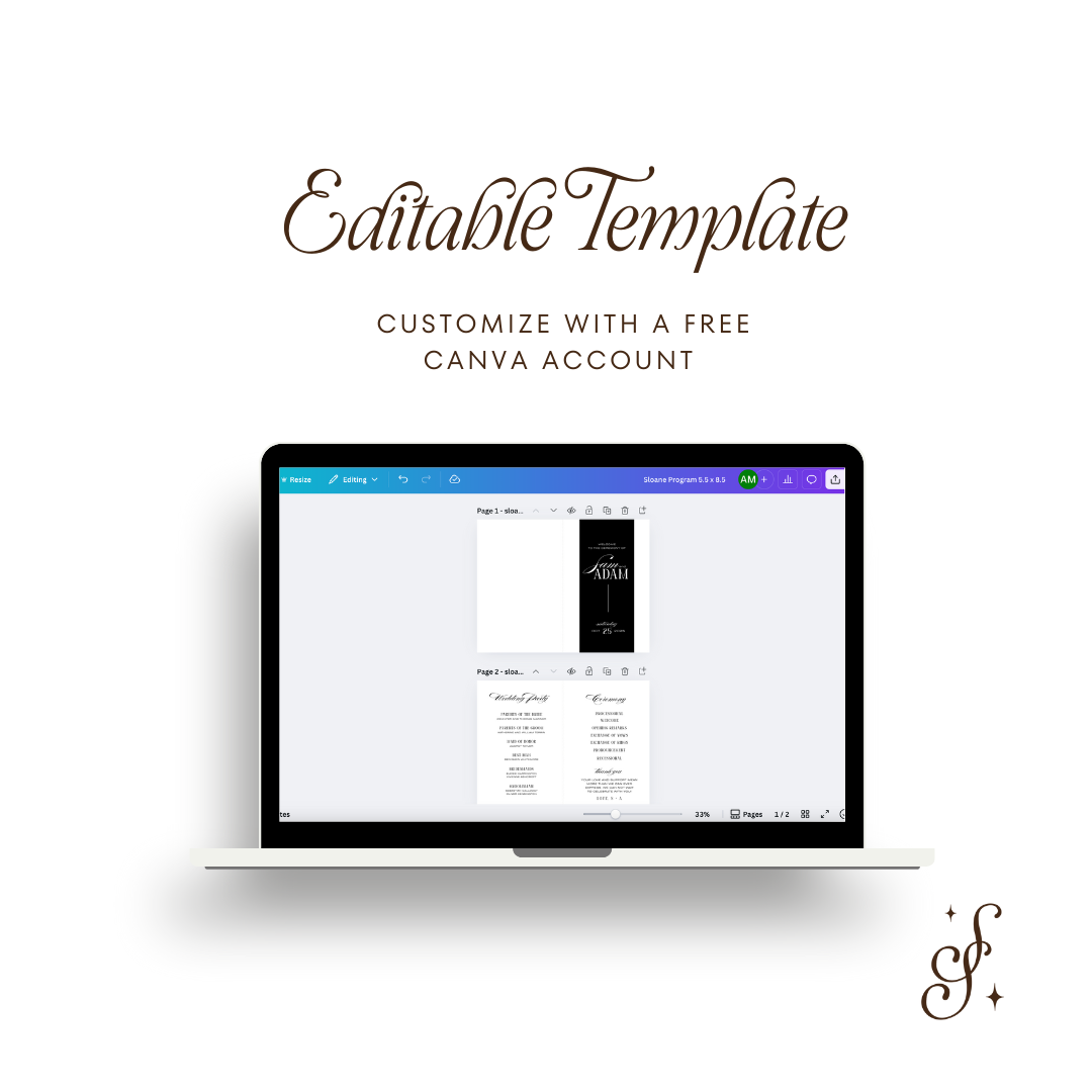 Fully editable, this design allows you to customize ceremony details, wedding party names, wording, fonts, and colors to reflect your celebration. Print at home or through a professional print shop for a polished, elevated finish.